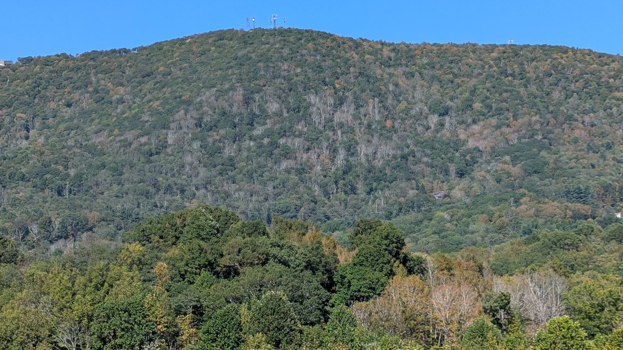 Even under gray skies, Grandfather Mountain continues to show signs of transitioning tones.